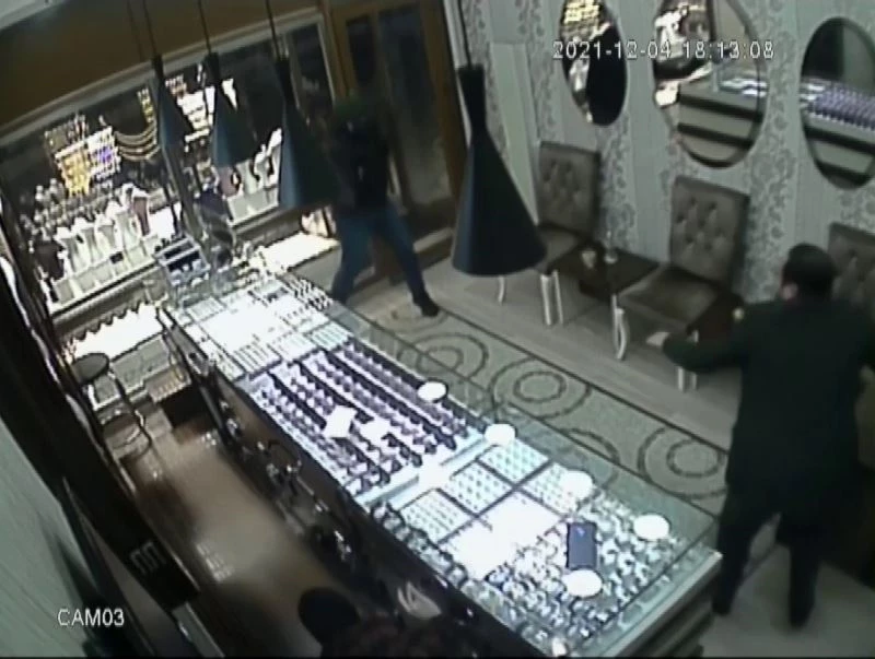Kuyumcunun soyguncu tarafından vurulma anı güvenlik kamerasına yansıdı