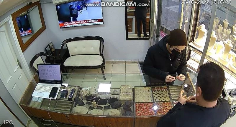 Öte yandan, kuyumcudan altın bileziklerin çalındığı anlar, iş yerinin güvenlik kamerasına yansıdı.
