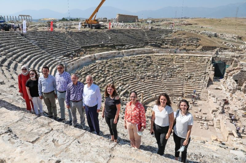 Ladoikya’da Denizli Büyükşehir Belediyesi ile birlikte çok güzel işler yaptıklarını anlatan Prof. Dr. Şimşek, "Burada 100 yılda yapılacak işleri 15-16 yıla sığdırdık. Sağ olsun Belediye Başkanımız özellikle ‘tiyatronun birini ayağa kaldıralım’ dedi. Birlikte bir proje hazırladık. Türkiye ve dünya tarihinde görülmemiş şekilde burada çok hummalı bir çalışma yapıyoruz. Tüm uluslararası kriterlerdeki restorasyon tekniklerini uyguluyoruz . Tiyatronun üst caveasında çalışmaların yüzde 70’inin tamamlandı ve yüzde 30’luk bölümünü de bir ay içerisinde tamamlayacağız” dedi.