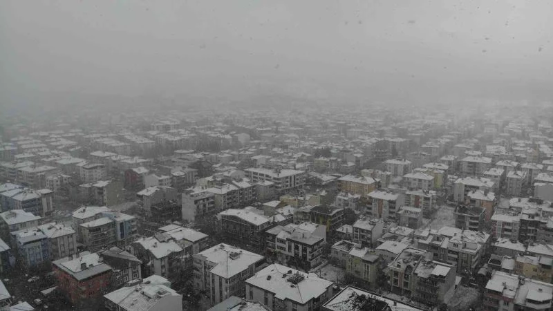 Meteorolojinin uyarılarının ardından Balıkesir’in birçok ilçesinde etkili olmaya başlayan kar yağışı, dron ile görüntülendi.