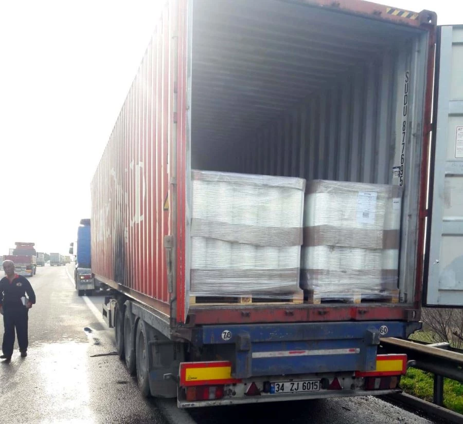LASTİĞİ ALEV ALAN TIR'DAKİ YANGINI İTFAİYE SÖNDÜRDÜ