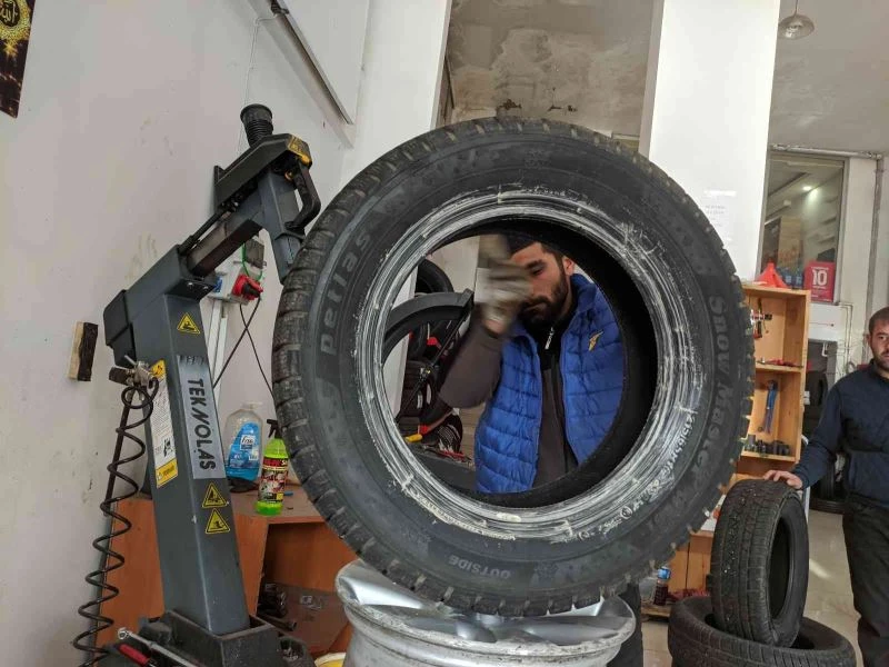 1 Aralık itibarıyla kış lastiği taktırma zorunluğu sebebiyle vatandaşlar lastik tamircilerinin yolunu tutarken, lastikçilerde de yoğun mesai başladı.