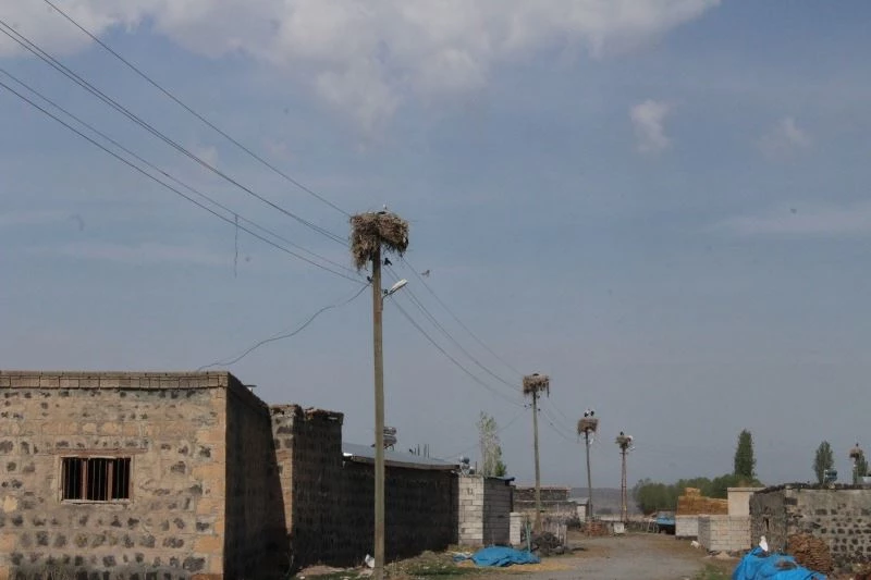 Iğdır’ın Aralık ilçesine bağlı Kırçiçeği köyünü leylekler mesken tuttu.