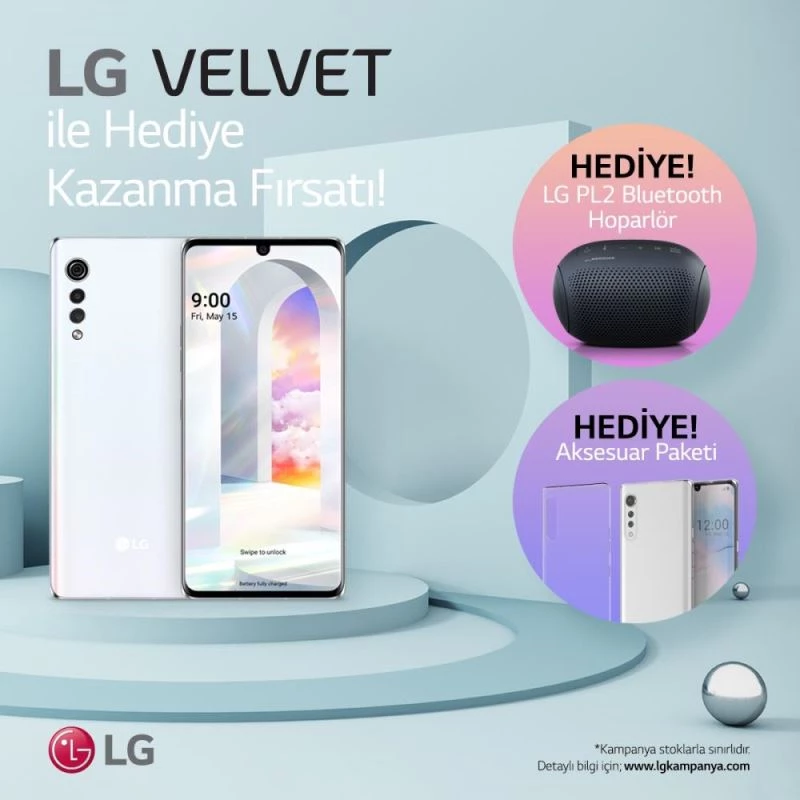 Turkcell ve Vodafone online magazalarindan LG Velvet satin alan kullanicilara, LG XboomGo PL2 tasinabilir Bluetooth Hoparlör ve kirilmaz camla kiliftan olusan aksesuar paketi hediye ediliyor. Hem teknolojik özelliklerinin yani sira tasarimiyla öne çikan bir telefon sahibi olmak, hem de bulundugu her yerde kaliteli müzik dinlemek isteyenler için kaçirilmaz bir firsat olan kampanya 31 Aralik 2020 tarihine kadar devam ediyor.