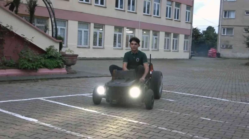 Giresun’un Tirebolu ilçesinde meslek lisesi bilgisayar bölümünde eğitim gören Atakan Zambak hurda metal ve atıl malzemeleri kullanarak jeneratör motorundan 4 tekerlekli araç yaptı.