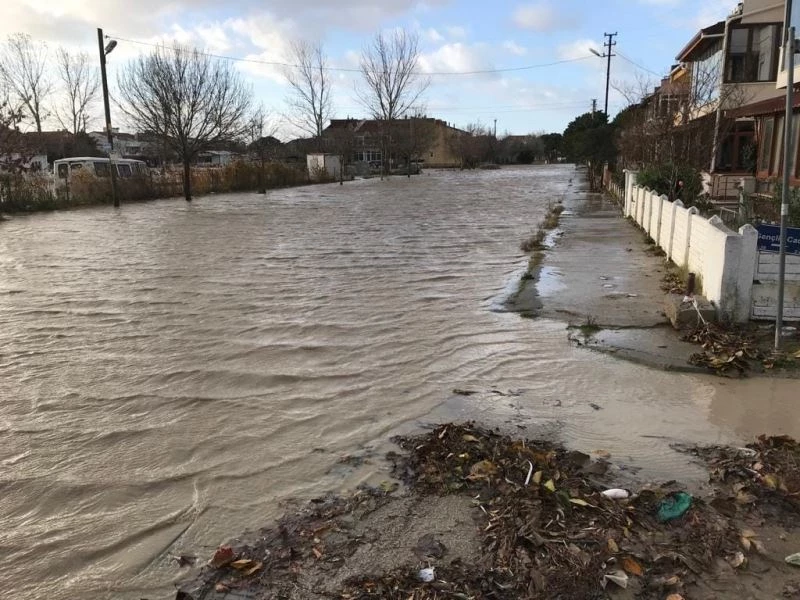 Edirne’nin Keşan ilçesinde şiddetli lodos sebebiyle deniz taştı. Yazlık evlerin bulunduğu sokaklarda ilerleyen deniz suları bazı binaların içine girdi.