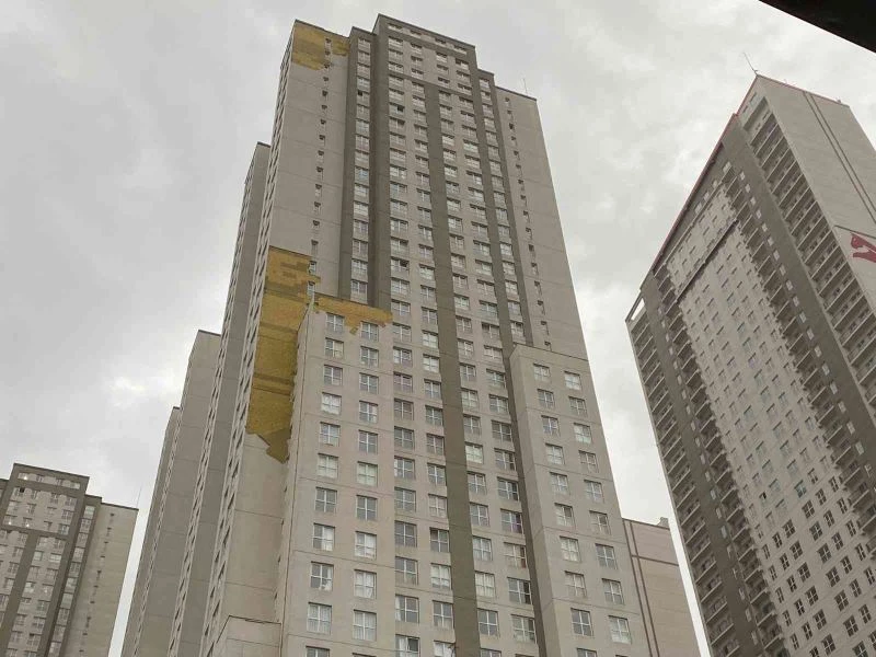 Esenyurt’ta lodos nedeniyle Özyurtlar Sitesi’nde bulunan binaların dış cepheleri adeta kağıt gibi soyuldu. Binalardan savrulan parçalar park halindeki araçlarda maddi hasar oluştururken, çevrede ise herhangi bir güvenlik önlemi alınmadı.