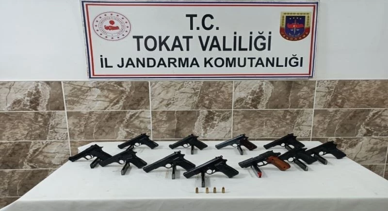 Edinilen bilgiye göre; Tokat İl Jandarma Komutanlığına bağlı ekipler il dışından ruhsatsız tabanca temin edileceği ve bu tabancaların Tokat’ta satacağı istihbaratı aldı. Harekete geçen ekipler Tokat’ın Niksar ilçesine bağlı Çamiçi köyünde bulunan bir şüpheliye ait araçta arama yaptı. Yapılan aramada LPG tankının altına gizlenmiş vaziyette 9 mm çapında el yapımı değişik marka ve modellerde 11 adet ruhsatsız tabanca, 11 adet tabanca şarjörü ve 4 adet 9 mm çapında tabanca fişeği ele geçirildi.