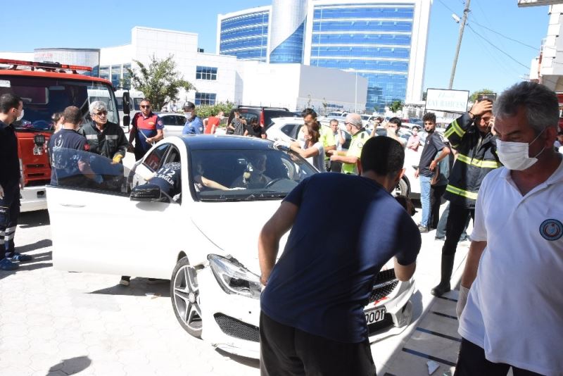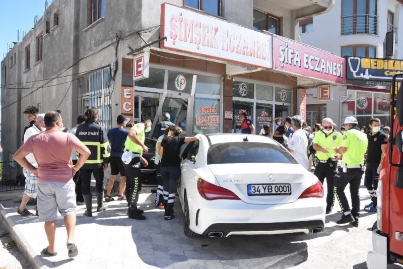 Sinop’ta lüks bir otomobil sürücüsünün yanlışlıkla fren yerine gaza basması nedeniyle eczaneye girdi.