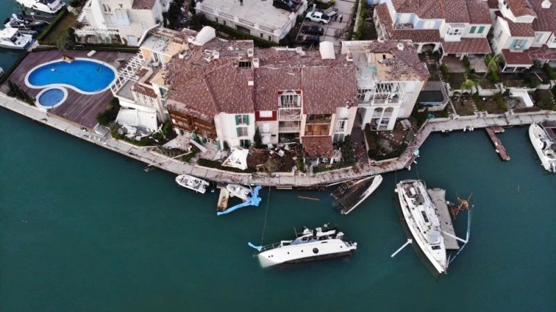 Lüks sitede yatlar yan yattı, bomba patlamış gibi görüntü oluştu