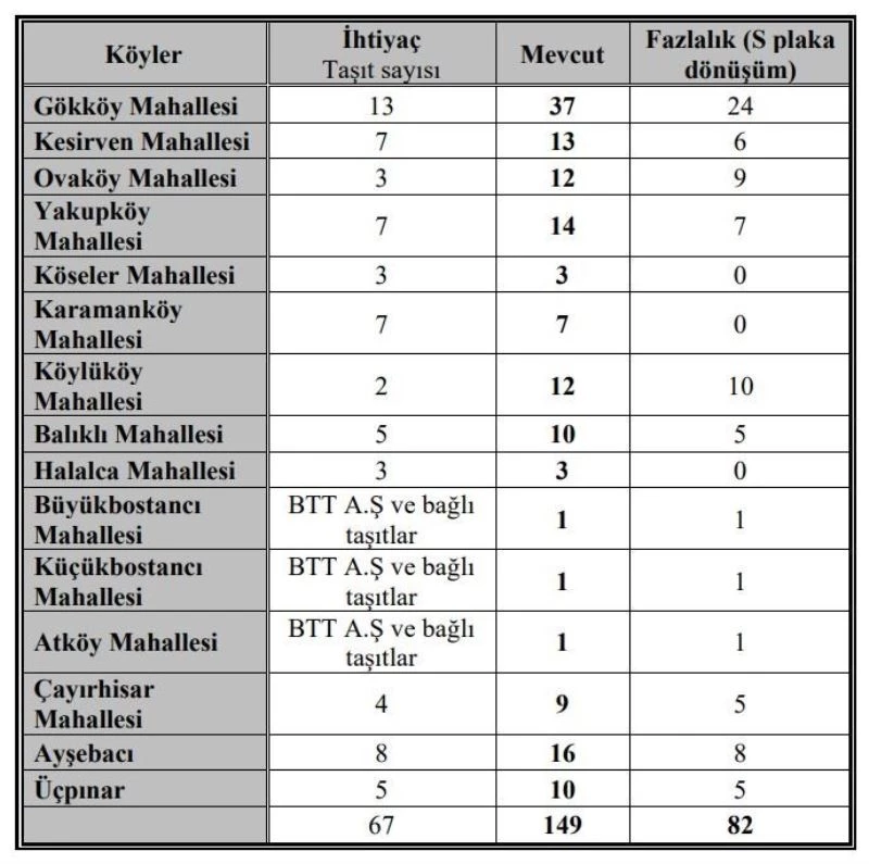 “28/02/2022 tarih ve 2022-85 sayılı UKOME kararının tebliği: başlık; 6360 sayılı yasa öncesinde Balıkesir Belediyesinin (Mülga) 19.12.2006 tarih ve 1543 sayılı Encümen kararı ve Balıkesir İdare Mahkemesi kararları doğrultusunda çalışma izni verilip, eski Mücavir olan sınırlarında bulunan mahallelerde faaliyet gösteren 149 adet güzergahı belirlenmiş olan ‘’M’’ plakaların ‘’S’’ plakaya dönüştürülmesi ile ilgili duyuru/tebliğ. 6360 sayılı yasa öncesinde, Balıkesir Belediyesi’ nin (Mülga) 19/12/2006 tarih ve 1543 sayılı Encümen kararı ve Balıkesir İdare Mahkemesi kararları doğrultusunda çalışma izni verilip, Eski Mücavir alan sınırlarında bulunan mahallelerde faaliyet gösteren 149 adet güzergahı belirlenmiş olan "M" plakaların "S" plakaya dönüştürülmesi ile ilgili Balıkesir Büyükşehir Belediyesi tarafından teknik rapor hazırlatılmıştır.Teknik rapor bağlamında, UKOME’nin 2022-85 sayılı kararı ile 15 (on beş) kırsal mahallede taşımacılık faaliyeti yapan toplu taşıma araçlarının, yapılan yolculuk hesaplamaları sonucunda yeterli talebin olmadığı, ancak; sanayi merkezlerinde bulunan fabrika/işçi sayılarında ki artış ve öğrenci sayılarındaki artış nedeniyle, işçi/öğrenci servisine ihtiyaç olduğu için ihtiyaç fazlası 82 "M" plaka toplu taşıma aracının, "S" plaka servis taşımacılığı yaparak, Merkez ilçelerimizde ihtiyaç olan okul/işçi servisi hizmetini karşılamaları uygun bulunmuştur. “M” plakalı araç kategorisinden “S” plakalı araç kategorisine, yaş ve kapasite şartlarına uymak şartıyla geçiş yapmak isteyenlere, 30.04.2022 tarihine kadar başvurularını tamamlamaları ilan olunur.”
