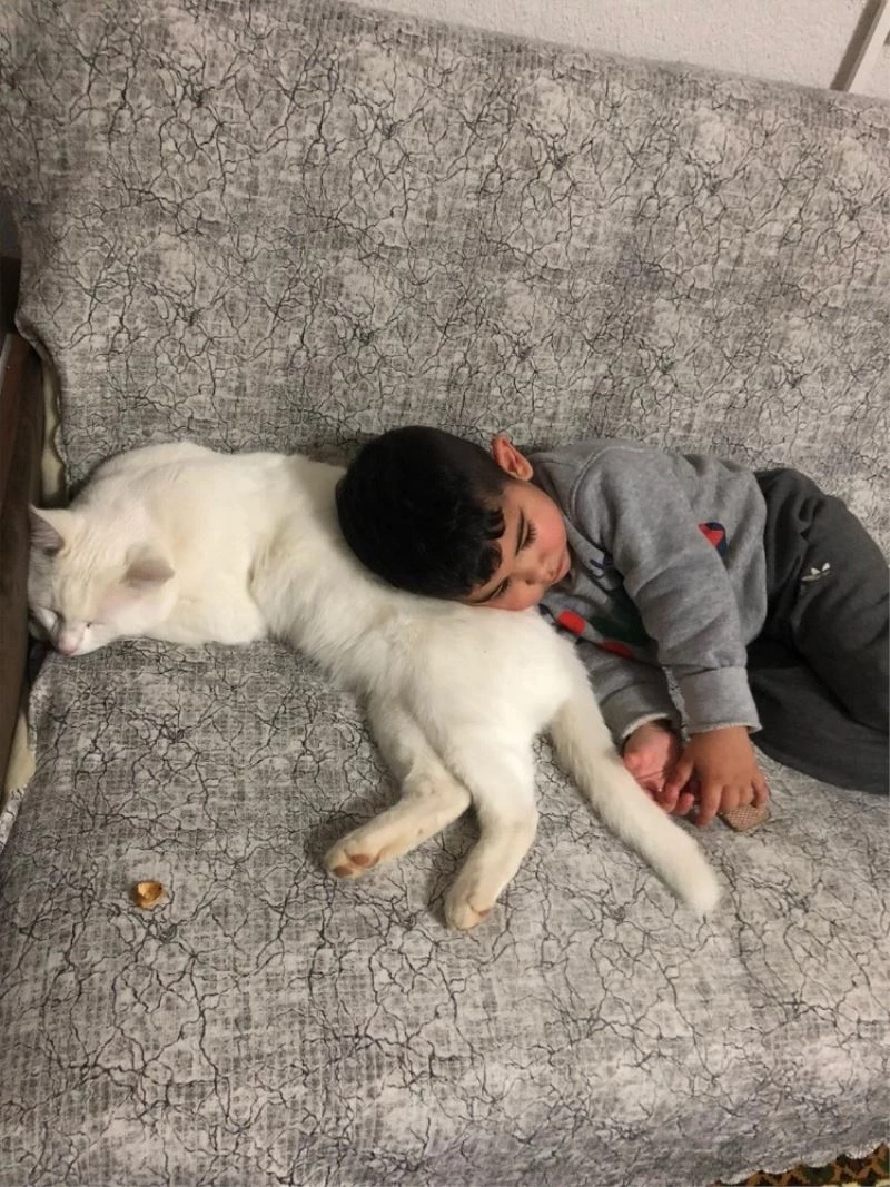 Olay, Çivril ilçesi Gürpınar Mahallesinde meydana geldi. Ali Binbay’ın beslediği kedi, köpeklerden korkarak mahallede bulunan telefon direğine çıktı. Mahallenin gençleri tarafından iş makinesi ile aşağıya indirildi. Telefon direğinden indirilen kedi küçük çocuk Ali Binbay’a teslim edildi. Küçük çocuk kedisi kurtarıldıktan sonra beraber evde yan yana uzanarak mutluluğunu paylaştı.