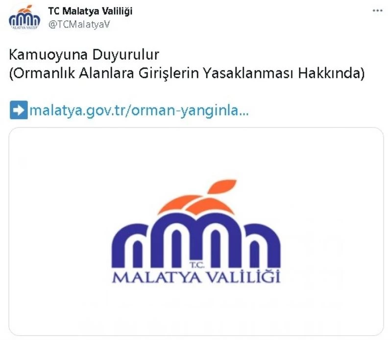 Malatya Valiliği, Ağustos ayı boyunca ormanlık alanlara girişlerin yasaklandığını açıkladı.