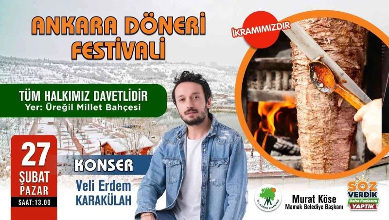 Mamak’ta bulunan Üreğil Millet Bahçesi’nde döner festivali düzenlenecek. Mamak Belediyesi tarafından organize edilen etkinlikte sanatçı Veli Erdem Karakülah sahne alacak. 27 Şubat Pazar günü gerçekleşecek festival, belediyenin sosyal medya hesaplarından da canlı olarak yayınlanacak.