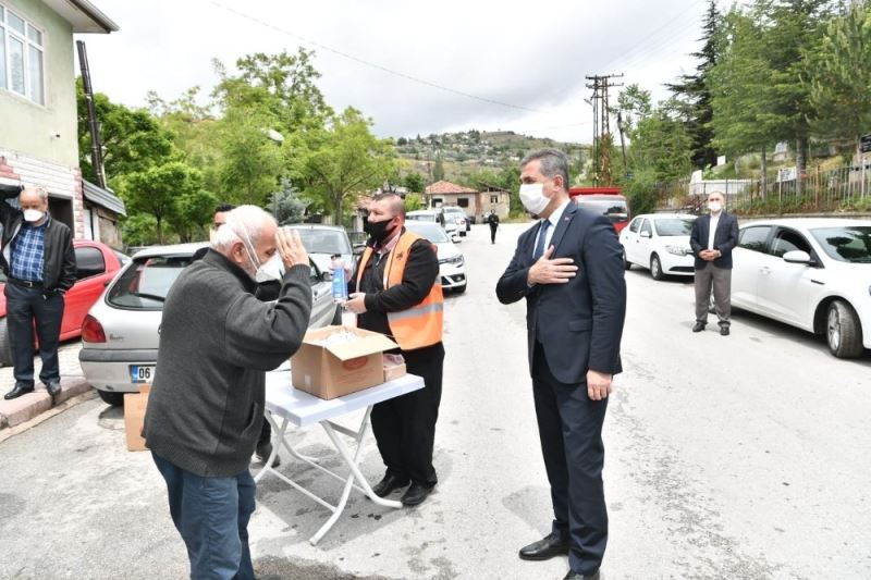 Mamak’ta cuma namazı öncesi maske ve seccade dağıtıldı