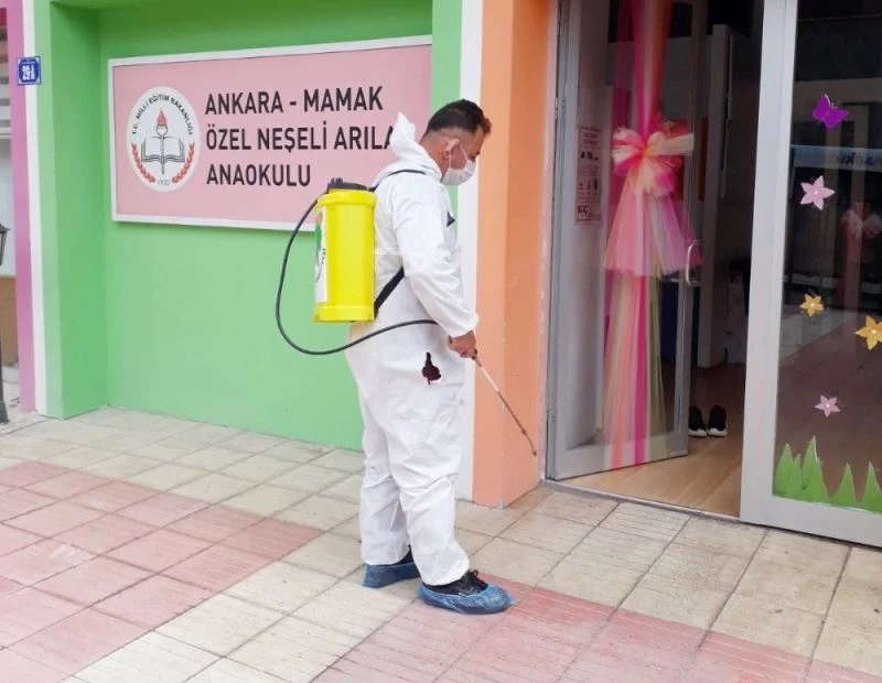 Mamak Belediyesi, 1 Haziran’da yeniden kapılarını açacak olan kreşlerde dezenfekte çalışması yaptı.