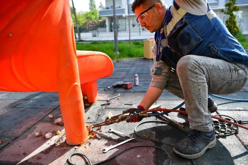Mamak Çevre Koruma ve Kontrol Müdürlüğü tarafından vatandaşların yoğun olarak kullandığı yeşil alan ve parklarda oyun grupları ve spor aletlerinin bakım ve onarım çalışmaları devam ediyor.