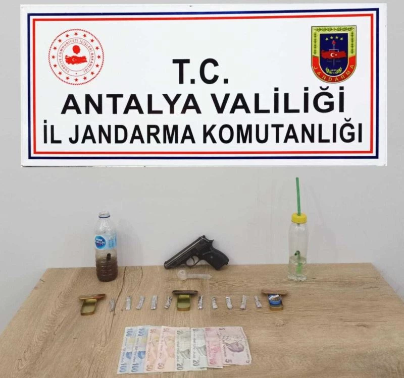 Antalya İl Jandarma Komutanlığı İstihbarat Şube Müdürlüğü ve Manavgat İlçe Jandarma Komutanlığı ekipleri tarafından Çolaklı Mahallesi’nde bulunan bir pansiyonda gerçekleştirilen operasyonda 10 paket satışa hazır metamfetamin, 2 kullanımlık esrar, 1 adet tabanca ve 325 TL uyuşturucu satışından elde edilen para ele geçirildi. Olayla ilgili, ruhsatsız silah bulundurma ve taşıma suçundan arama kaydı bulunan B.A. isimli şahıs ile birlikte 1 şüpheli gözaltına alındı.
