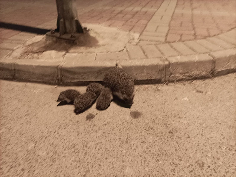 Kirpi ve 4 yavrusunun araçların arasında yolun karşısına geçmeye çalıştığını gören vatandaşlar duruma müdahale etti. Trafik akışın yoğun olduğu alandan yavruları ile birlikte alınan kirpi, güvenli bir bölgeye bırakıldı.