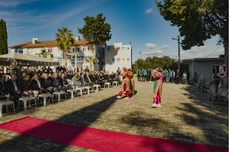 Kütüphanenin açılışı için okulda tören düzenlendi.