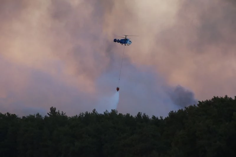 Antalya’nın Manavgat ilçesi Yeniköy Mahallesi’nnde saat 12.00 sularında çıkan yangın rüzgarın da etkisi ile bir anda büyüdü. 4 mahallede etkili olan yangını söndürmek için 2 uçak, 19 helikopter, 191 arazöz ve bine yakın orman işçisi mücadele ediyor. Yangının ilk çıkış noktası olarak bilinen Yeniköy Mahallesi’nde ise söndürme çalışmaları havadan drone ile görüntülendi. Görüntülerde gökyüzünün adeta dumanla kaplandığı, güneşin renginin kızıla büründüğü görüldü. Aynı anda 4 helikopter de havadan söndürme çalışmasına destek veriyor.