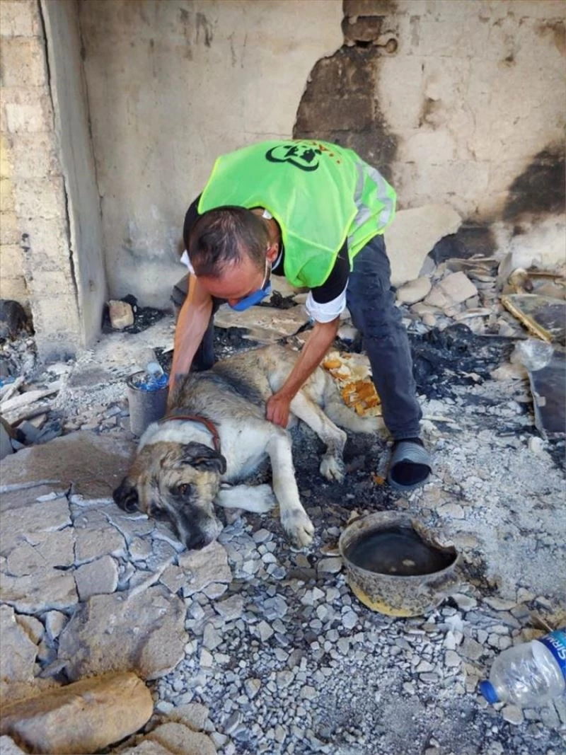 Yangın sırasında Oymapınar Mahallesi'nde tamamen yanan bir evde yaralı halde bir köpek gören vatandaşlar, durumu Hayvanları Çaresizlik ve İlgisizlikten Koruma Derneği'ne bildirdi.