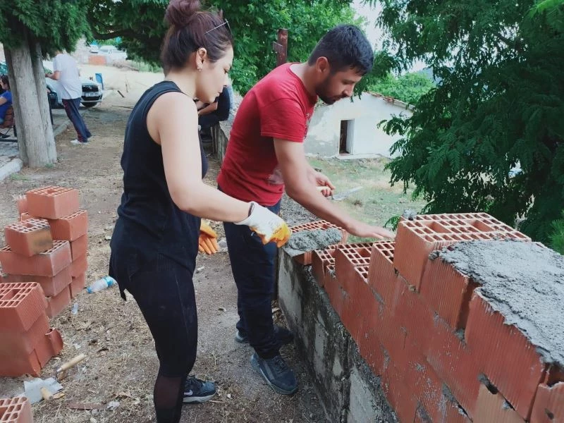 Manisa’da öğretmenden avukata, fabrika işçisinden öğrenciye, mühendisten güvenlik görevlisine kadar farklı meslek gruplarında yer alan 28 gönüllü Yunusemre ilçesindeki Çamlıca Mahallesindeki okulun yenileme çalışmalarında tuğla taşıyıp, sıva yaptı.