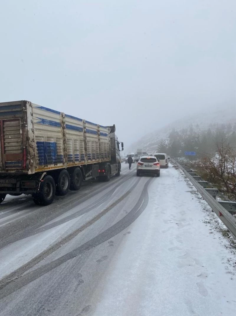 Mardin’in Mazıdağı ilçesinde etkili olan dolu yağışı sebebiyle onlarca araç yolda mahsur kaldı.