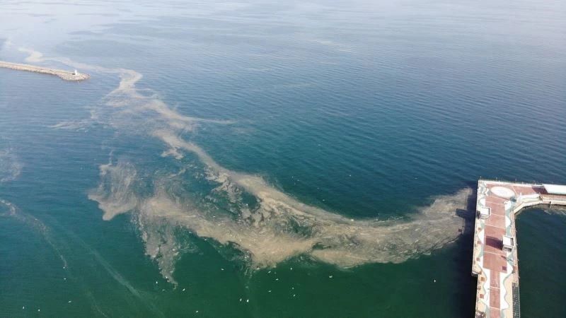 Marmara’da endişelendiren görüntü: Deniz salyası Marmara’yı turuncuya boyadı