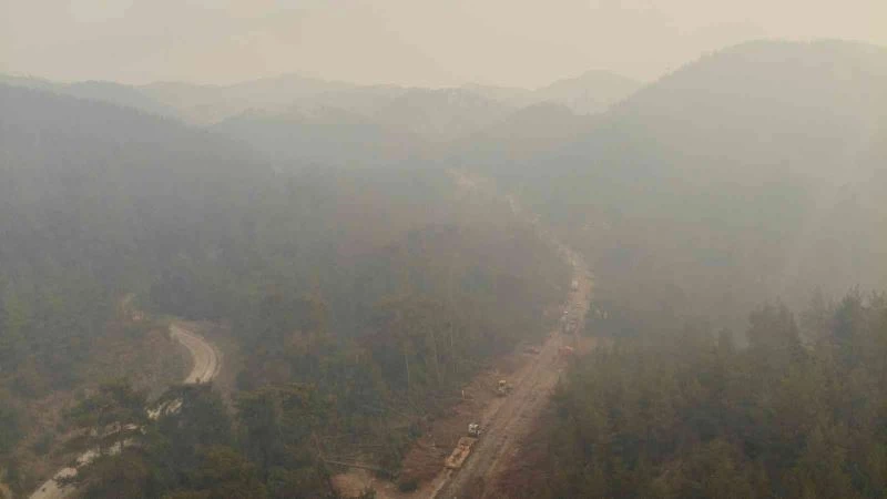 Yangının ilerleyişini durdurmak için yoğun mücadele veren ekipler ise yolun karşısındaki ağaçları ıslatarak korumaya alırken, alevlerin geldiği yöndeki ağaçların bir kısmını ise devirerek tahkimat oluşturuyor. Ekipler, bu şekilde alevlerin önünü keserek yangının daha fazla ilerlemesini önlemek için uğraş veriyor.