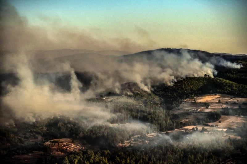 Çalışmalar 2 saat 10 dakika sürdü. Yangın helikopterinin söndürme çalışmaları helikopterden görüntülendi. Marmaris’teki yangınlara gün boyu havadan ve karadan müdahaleler sürecek.