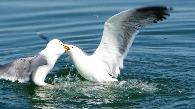 Türkiye’nin en büyük sodalı gölü olan Van Gölü, eşsiz manzarası eşliğinde martıları da besliyor. Van Gölü’nün Gevaş sahilleri yüzlerce martıya da ev sahipliği yapıyor. Van Gölü’nü beyaz kanatları ile güzelleştiren martıların inci kefali kapabilmek için birbirleriyle kavga etmesi kameralara yansıdı.