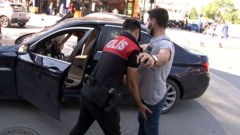 Arnavutköy İlçe Emniyet Müdürlüğüne bağlı ekipler, ilçe genelinde maske ve sosyal mesafe uygulaması yaparken, aracıyla durdurulan bir kişiye maske takmadığı gerekçesiyle Hıfzıssıhha Kanunu kapsamında 900 TL ceza kesildi. Ceza yememek için kimliğini vermeye direnen ve dakikalarca dil döken vatandaş, polisi ikna edemeyince sinirlenerek tişörtünü çıkarttı. Üstünü çıkartarak bütün gün çalıştığını ve bu yüzden yorulduğunu söyleyen kişi, polis ekiplerinin müdahalesi sonrası sakinleşti. Polis ekiplerine ceza yediği için beddua eden kişi, yanında bulunan kişiler tarafından arabaya bindirilerek götürüldü.