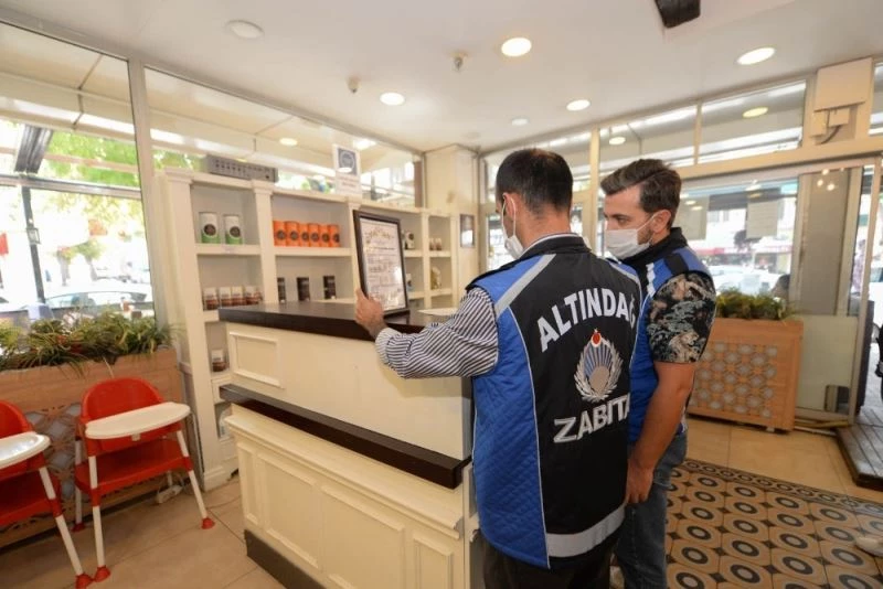 Altındağ’da marketten manava, şarküteriden kafelere, pastanelerden güzellik salonlarına kadar her noktada denetim gerçekleştiren Altındağ Belediyesi zabıta ekipleri, işletmecilere de müşterilere de maske ve dezenfektan kullanımı, sosyal mesafe, genel hijyen ve temizlik, açılış ve kapanış saatleri gibi konularda hatırlatmalarda bulundu.