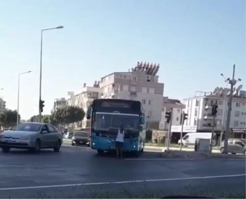Antalya’da halk otobüsüne maskesiz binmeye çalışan bir yolcu, ilginç bir eyleme imza attı. Şoför tarafından içeriye alınmayan yolcu, seyir halindeki otobüsün önüne geçti, sileceklerini tutarak araçla birlikte ilerledi.