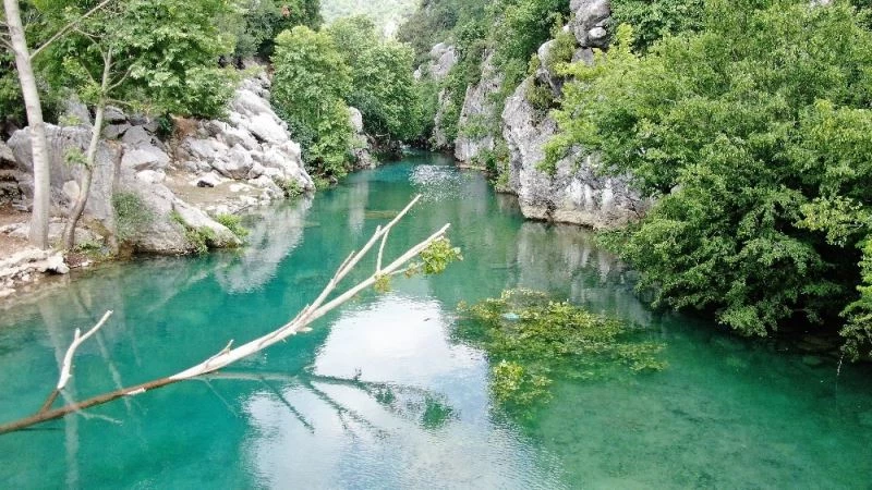 Kahramanmaraş’ta, mavi ve yeşil renklerinin buluştuğu doğa güzelliklerinin başında yer alan ‘Kanlıbüvet Kanyonu’ ilgi çekiyor.