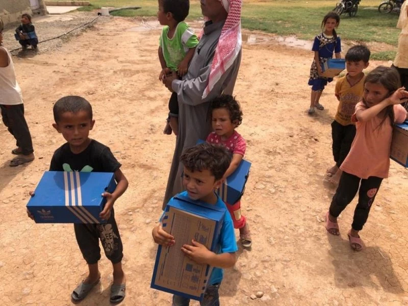 Milli Savunma Bakanlığının sosyal medya adresinden yapılan paylaşımda, "En zor şartlarda gece gündüz demeden Suriyeli kardeşlerimizin yanında olan kahraman Mehmetçik, Kurban Bayramı dolayısıyla Barış Pınarı bölgesindeki çocuklara ayakkabı yardımı yaparak bir kez daha miniklerin yüzünü güldürdü" denildi.