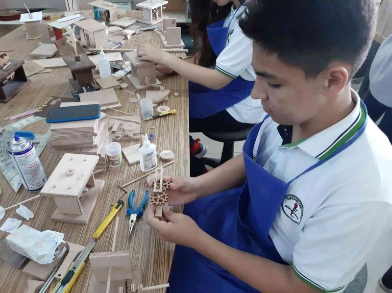 Proje çerçevesinde öğrencilere mekanik ahşap üretimi noktasında kurulan atölyede eğitimler verilirken, öğrenciler tarafından da mekanik ahşap üretimi yapılmaya başlandı.