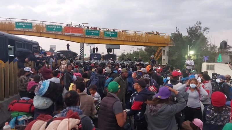 Meksika’nın başkenti Mexico City’e ulaşmak için Puebla şehrinden yola çıkan ve çoğunluğu Haitili, El Salvadorlu ve Honduraslı göçmenlerden oluşan kafile, Mexico City-Puebla arasındaki yolda polis tarafından durduruldu. Başkent polisinin yaklaşık 350 kişilik bir ekiple yola barikat kurması üzerine öfkelenen göçmenler polisle çatıştı. Görgü tanıkları, polisin aralarında çocukların da bulunduğu göçmenlere karşı göz yaşartıcı gaz kullandığını belirtti. Göçmenlerden bazıları polise tekme ve yumruklarla saldırırken, bazıları da taş, sopa ve şişe gibi nesneler fırlattı.