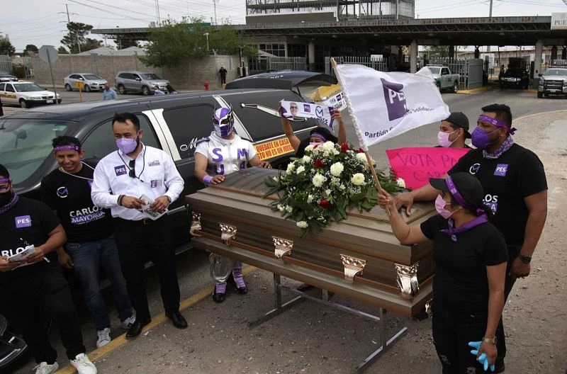 Yeni tip korona virüs (Covid-19) salgınından en çok etkilenen ülkelerden Meksika’da eski bir televizyon programcısı olan Carlos Mayorga, Encuentro Solidario partisinden meclisin alt kanadı için milletvekili adayı olmuştu. Mayorga, mevcut iktidarın umursamazlığı nedeniyle Covid-19 salgınında hayatını kaybedenlere ve suç örgütleri ile bağlantılı ölümlere dikkat çekmek için ilginç bir yol seçerek, seçim kampanyasını tabuttan çıkarak başlattı. Mayorga’nın tabutla geldiği seçim kampanyası tanıtımına, ekibinin üyeleri de Covid-19’a karşı koruyucu ekipmanlarla katıldı.