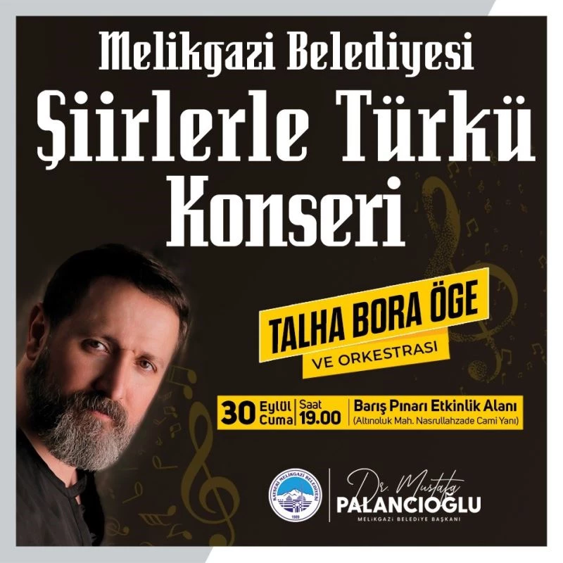 Melikgazi Belediyesi kültür ve sanat etkinlikleri çerçevesinde; Radyo Programcısı ve Şair Talha Bora Öge ile birlikte 30 Eylül Cuma günü ’Şiirlerle Türkü Konseri’ düzenleyecek.