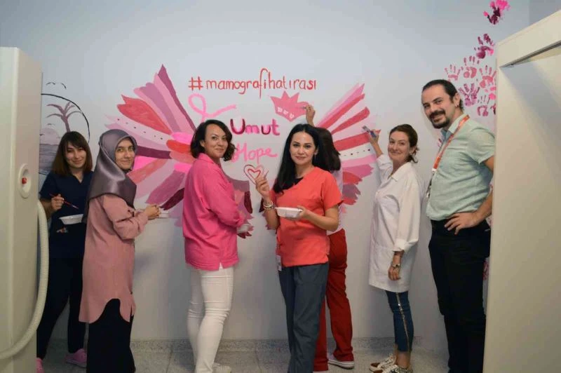 1-31 Ekim Meme kanseri farkındalık ayı çerçevesinde, Muğla Eğitim ve Araştırma Hastanesi Radyoloji Uzmanı Doç. Dr. Funda Dinç koordinatörlüğünde mamografi odasının duvarları boyandı.