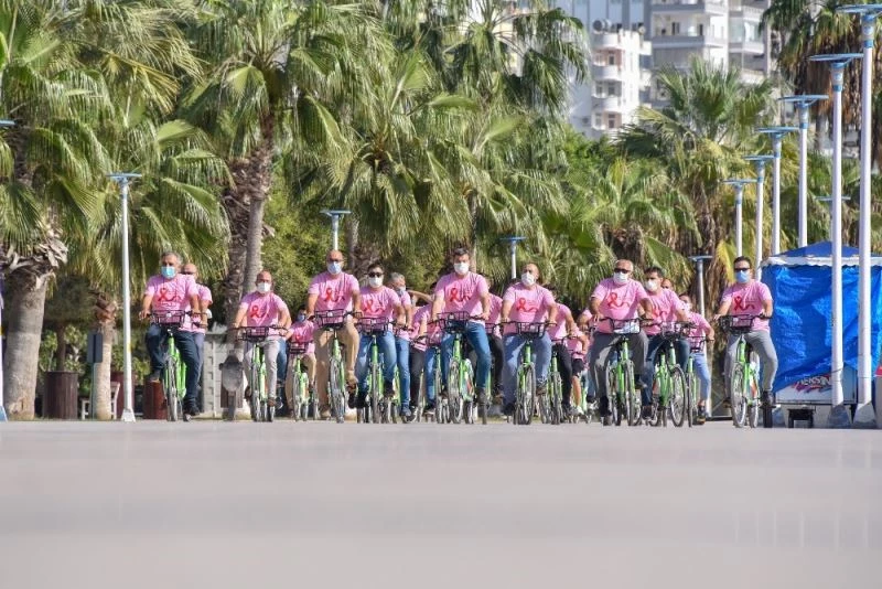 Mersin Büyükşehir Belediyesi, “1-31 Ekim Meme Kanseri Farkındalık Ayı” kapsamında Adnan Menderes Bulvarı sahil şeridinde bisiklet sürme etkinliği düzenledi. Spor aktivitelerinin de gerçekleştirildiği etkinlikte, Büyükşehir Belediyesinin erkek personeli de meme kanserine dikkat çekmek için “Erken Teşhis Hayat Kurtarır” yazılı pembe tişört giyip, sahil boyunca pedal çevirdi.