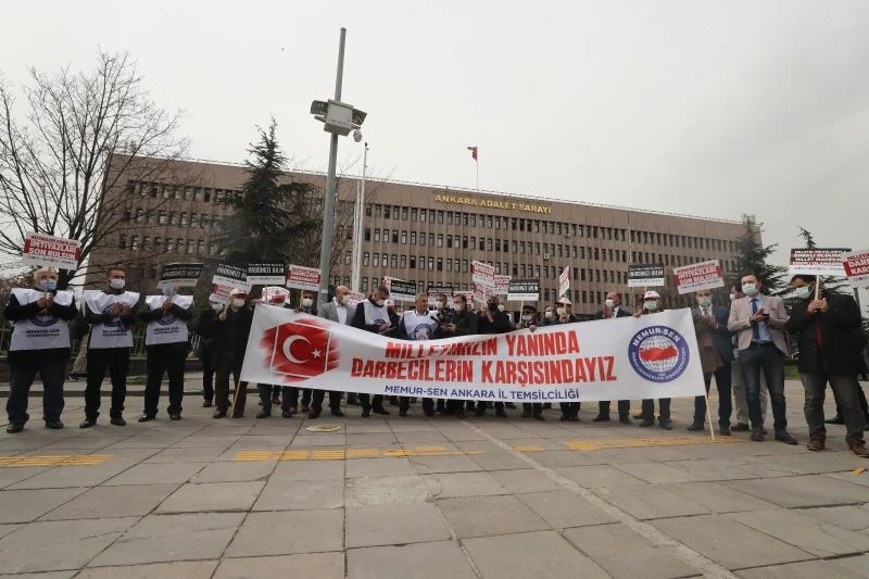 Biz de Memur-Sen olarak 81 ilde milletin iradesine karşı bir müdahale hevesi olarak gördüğümüz bu meş’um açıklama ve o açıklamaya imza atanlar hakkında suç duyurusunda bulunuyoruz. Hazırladığımız dilekçeyi savcılığa teslim etmek için bir araya geldik. Millet olarak, irademize uzanmak isteyen elin ve arkasındakilerin ortaya çıkarılmasını, yargılanmasını, cezalandırılmasını istiyoruz. Vesayet sevdalılarına hadleri bildirilmeli, darbe heveslileri yargı önünde hesap vermelidir. Öte yandan bu bildiriye imza atanların siyasete müdahale aracı olarak kullandıkları rütbeleri ellerinden alınmalı, o rütbeler üzerinden elde ettikleri kazanç ve imtiyazlar sona erdirilmelidir."