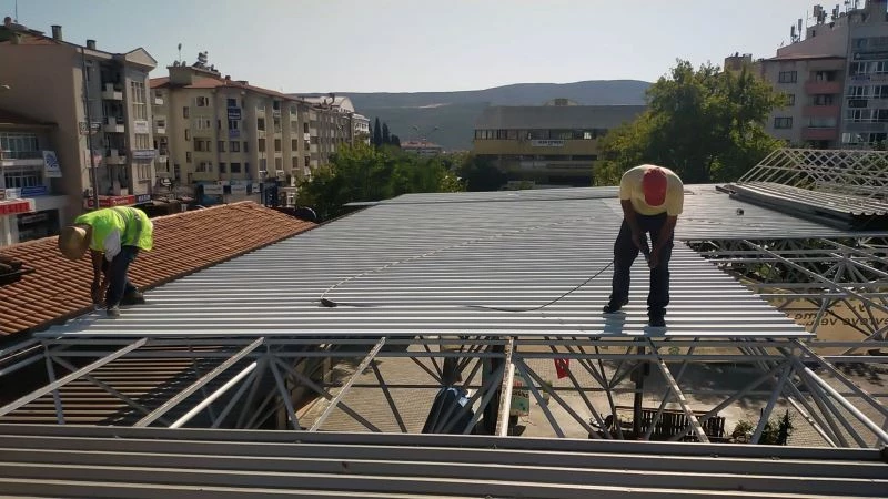 Başkan Gümüş, “Pazar yeri yenileme çalışmalarımız kapsamında pazar yerimizin yıpranan, eskiyen ve kullanım ömrünü tamamlayan çatısını da yeniliyoruz. Yenilenen çatı aşırı ısınmaya karşı mukavemet göstermesi için beyaz renkte olacak. Uzay çatı olarak bilinen sisteme sahip olacak çatıda ayrıca yağmur olukları da yer alacak. Böylece aşırı yağışlarda herhangi bir çökme ve su baskınının da önüne geçilecek. Çalışmalar tamamlandığında pazar yerimiz daha modern ve güvenli bir halde halkımıza ve üreticilerimizin hizmetinde olacak” diye konuştu.