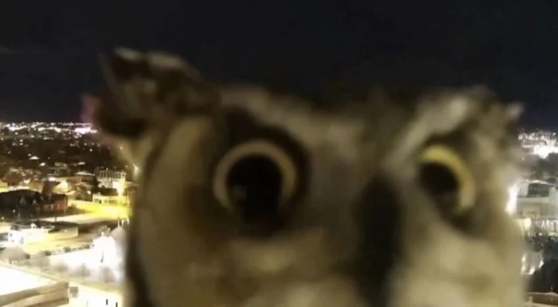 ABD’nin Montana eyaletine bağlı Great Falls’da bir baykuş bankaya ait binanın en üst katına yerleştirilen hava durumu gözlem kamerasına takıldı. Gece saatlerinde kaydedilen görüntülerde meraklı baykuşunun kameranın merceğine yaklaştığı ve bir süre kamerayı incelediği görüldü.