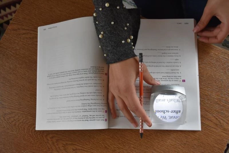 Mercekle okuyabildiği için öğretmenleri ve arkadaşlarının kendisine çok yardımcı olduklarını dile getiren Fidan, merceğin yazıları büyüttüğünü ve kırılması üzerine öğretmenin yeni bir mercek aldığını söyledi.