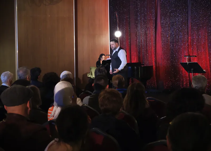Azerbaycanlı bestecilerin eserlerinden oluşan repertuvarın seslendirildiği konserde sanatseverler de şarkılara eşlik ederek keyifli anlar yaşadı.