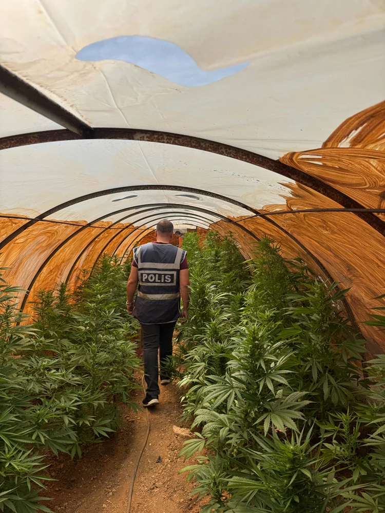 MERSİN - Mersin'in Aydıncık ilçesinde evinin bahçesindeki serada Hint keneviri yetiştiren şüpheli tutuklandı.
