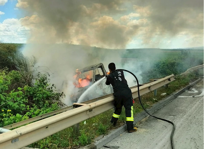 Kamyonetteki yangın itfaiyenin müdahalesiyle söndürüldü.